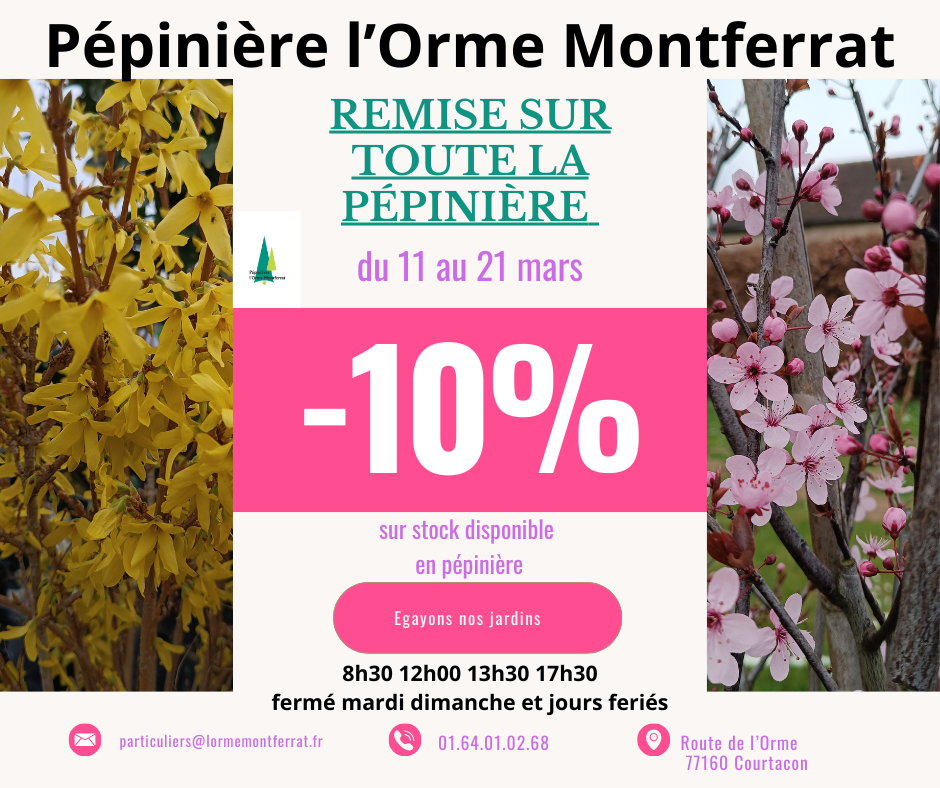 Établies à Courtacon en Seine-et-Marne, les Pépinières L’Orme Montferrat proposent toute une gamme de végétaux d’ornement et d’arbres fruitiers. Visitez notre domaine pour trouver les plantes, arbustes et arbres destinés à sublimer votre jardin.